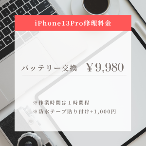 🔧 修理内容・iPhone13 Pro バッテリー交換・修理料金:9,980円・修理時間:約1時間